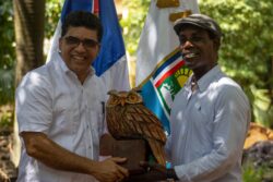 Los presentes recibieron el obsequio de un búho tallado en madera, de parte del profesor y escultor Casilla. Esta iniciativa pretende llevar el arte de la talla de madera a plazas y parques de Santo Domingo Este, fortaleciendo la identidad cultural y la participación comunitaria en el desarrollo artístico local.