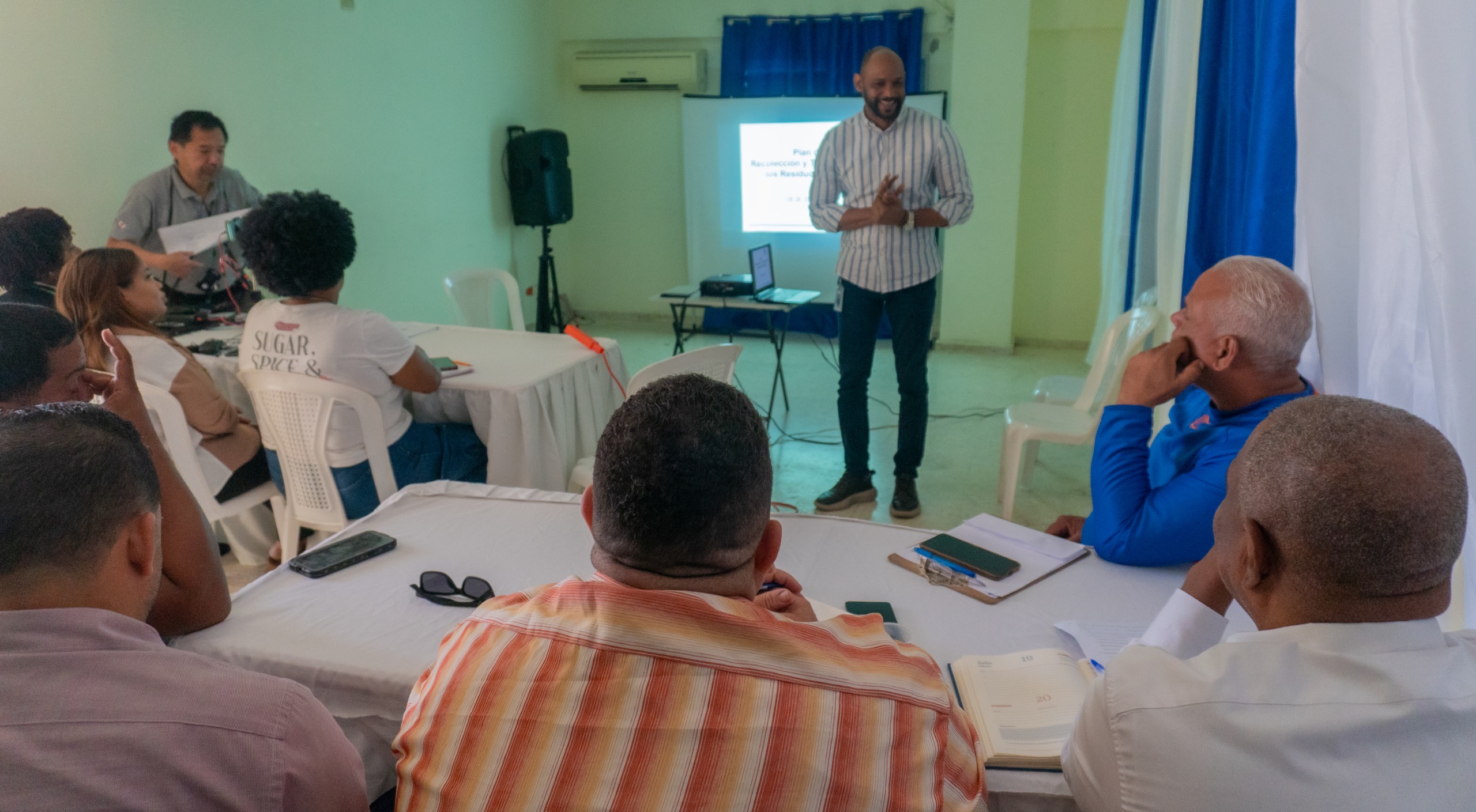 El taller cuenta con el apoyo de la Agencia de Cooperación Internacional del Japón (JICA), representada en este proceso por Nobuhiro Oda, y con la colaboración de la Liga Municipal Dominicana (LMD), a través del especialista en gestión de residuos Elvin López, junto a Camilo Tapia. La coordinación local está a cargo del encargado de Operaciones de la Dirección, José Mateo. La capacitación se desarrolla en la sala de conferencias de la Estación III del cabildo, en el sector Los Mameyes.
