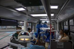 De su lado, el doctor Víctor Veras, representante de “Dental Suite”, explicó que la institución dispuso dos unidades móviles totalmente equipadas, con sillones ergonómicos, planta eléctrica, compresores, departamentos para residuos y un equipo de cinco profesionales.
