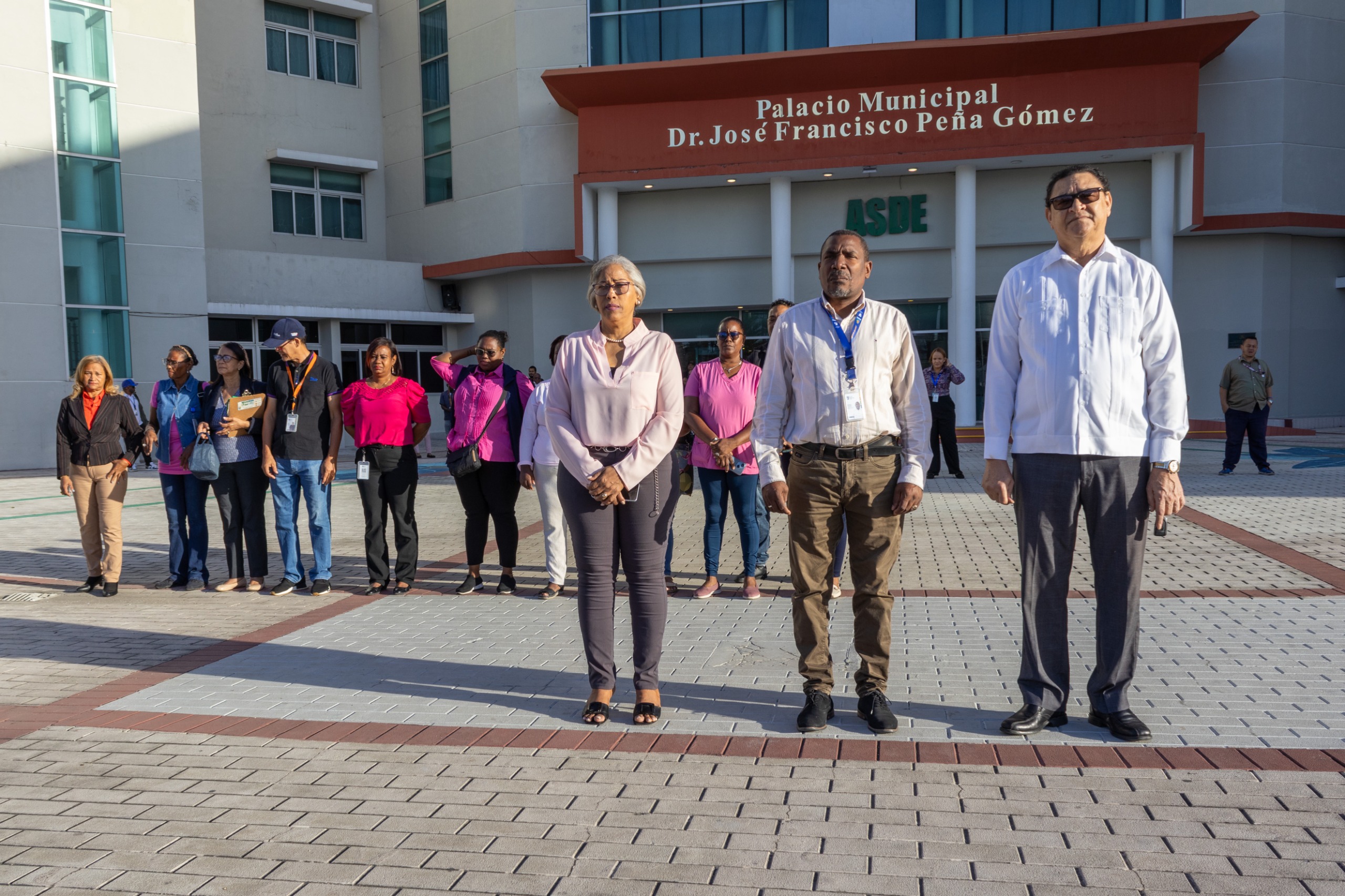 Cada mañana antes de iniciar las labores la Alcaldía de Santo Domingo Este, realiza el izamiento de la bandera nacional en la explanada frontal del Palacio Municipal “Dr. José Francisco Peña Gómez”, acompañado de la interpretación del Himno Nacional, actividad que rinde homenaje a la patria y promueve el respeto a los emblemas que representan la dominicanidad.