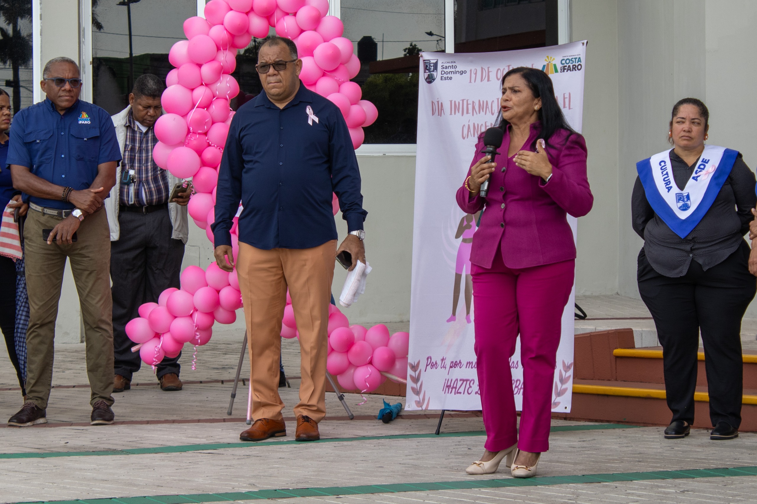 Luego de la entonación del himno nacional, la vicealcaldesa se dirigió a todos los presentes, enfatizando que no solo durante el mes de octubre debemos de tomar en cuenta las implicaciones del cáncer de mama.