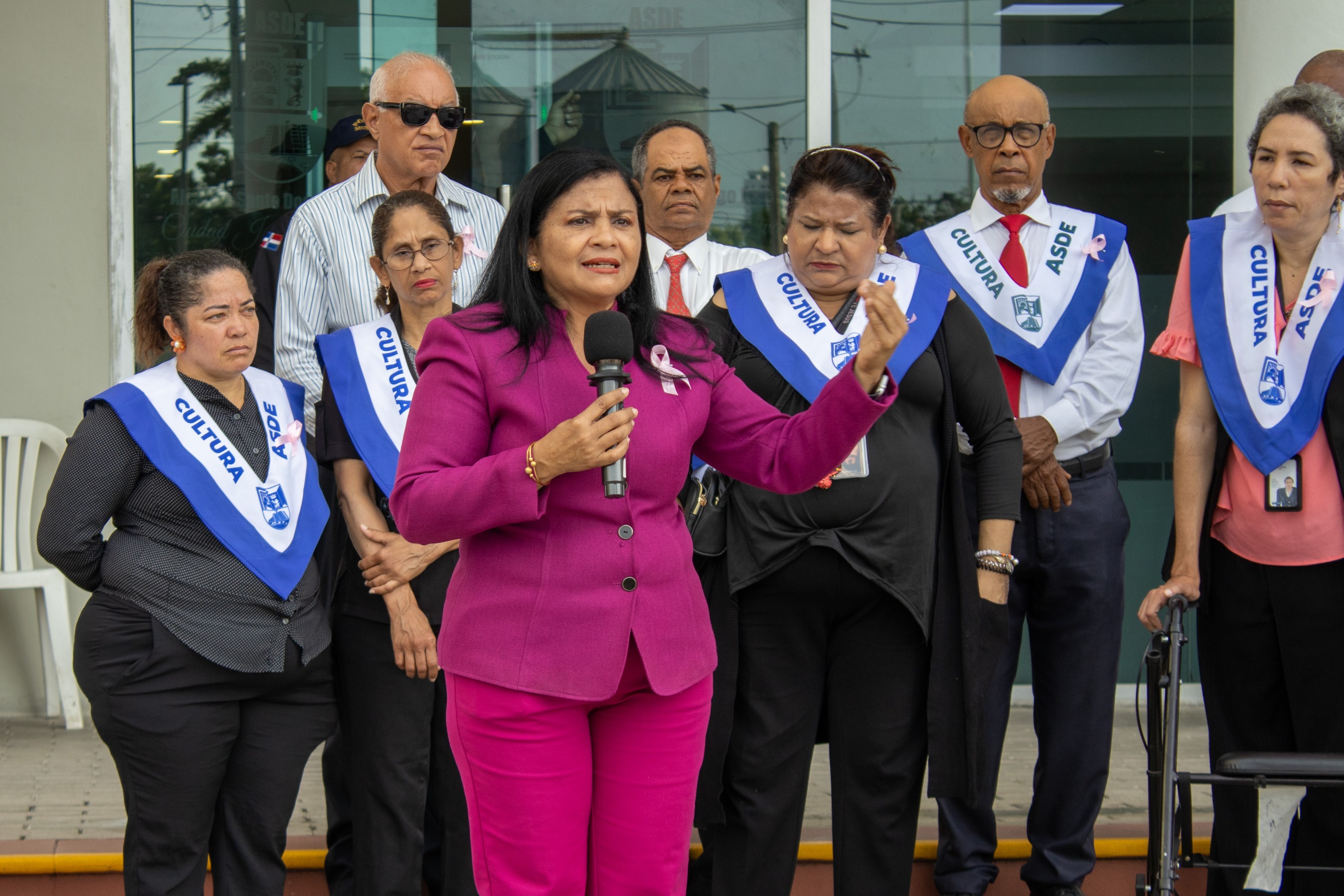El acto de clausura contó con la participación de la vicealcaldesa Ángela Henríquez, quien reforzó el mensaje de respeto a los símbolos patrios y el cuidado de la salud, distribuyendo materiales informativos, lazos rosados y obsequios alusivos a la campaña de prevención.